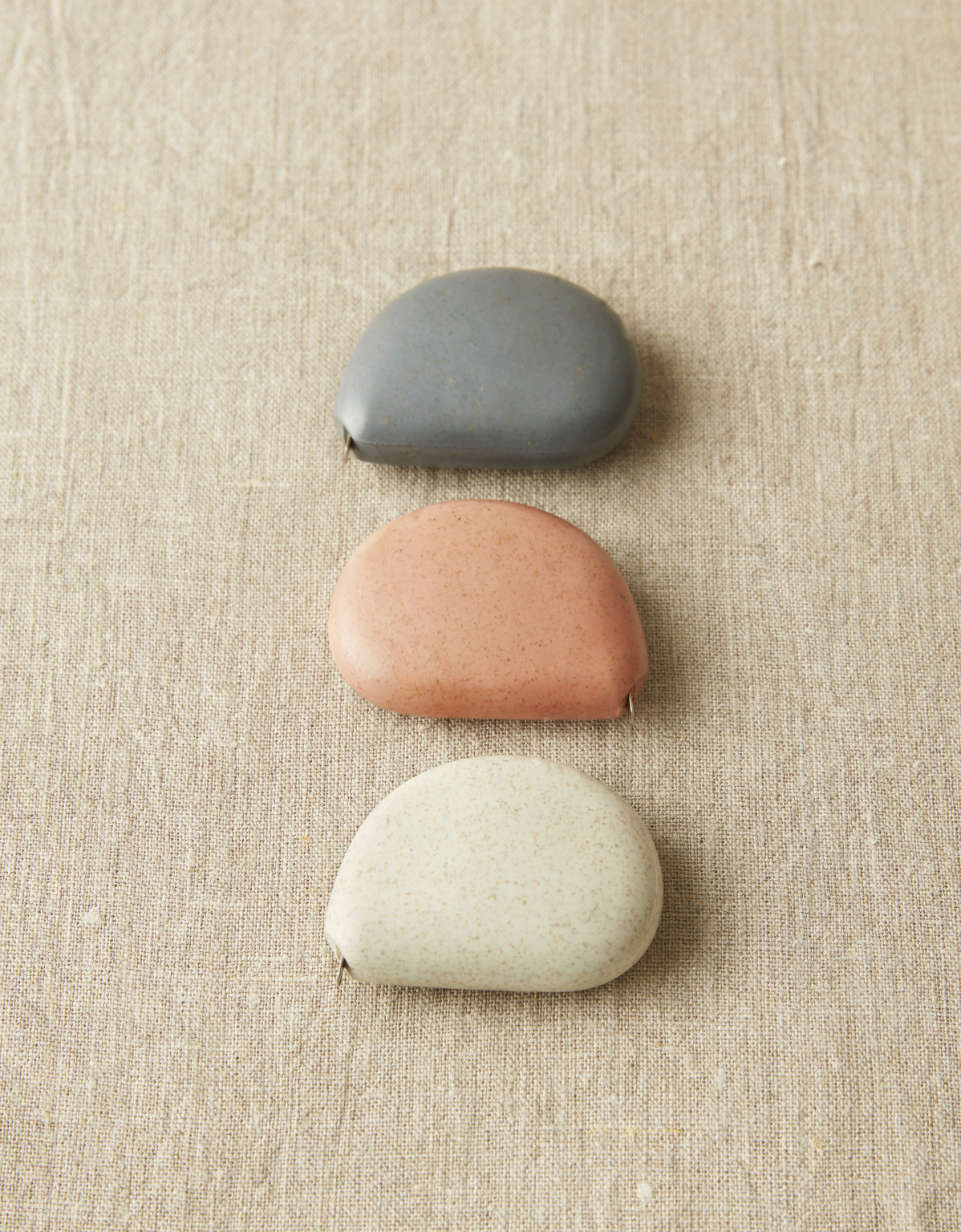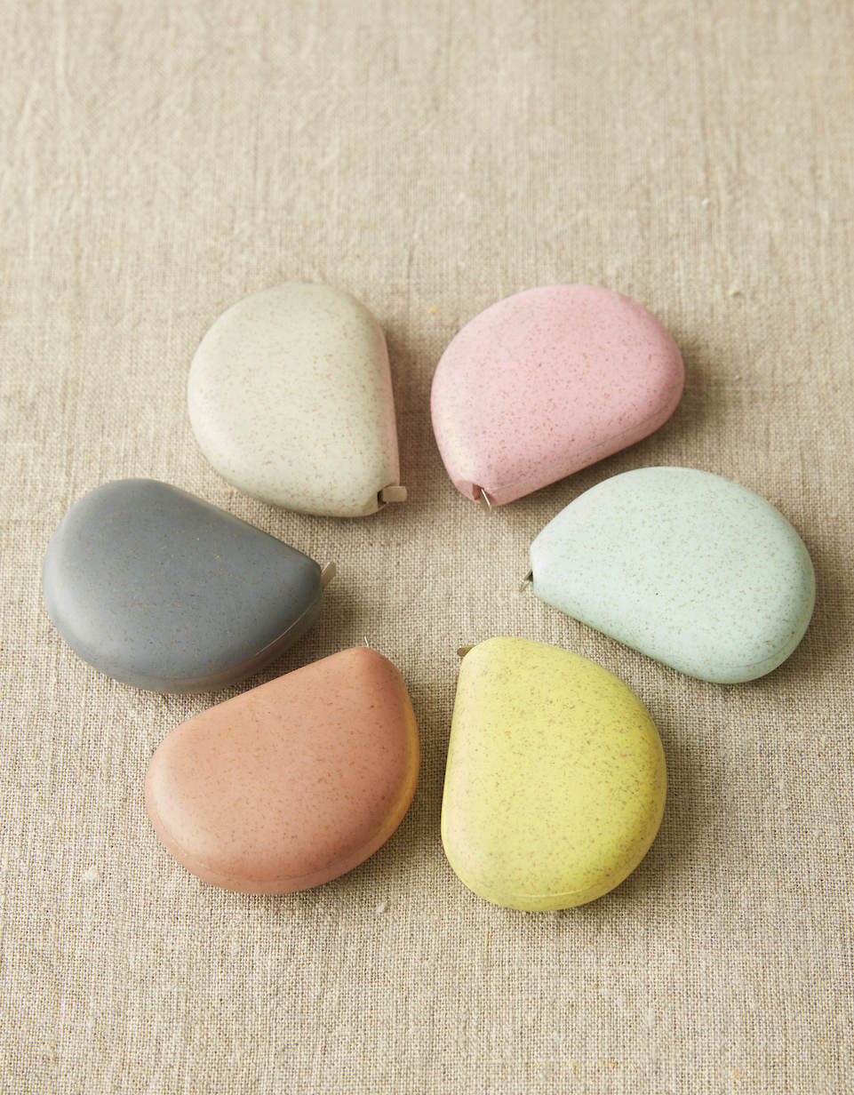 The bright colors will ensure you can always find it in your project bag. The earth tone colors add a pebble inspired look to your tools. The metal tape inside measures both inches and cm/mm (78" / 2 m long), and has a metal tab on the end to keep it from retracting into the body of the tape measure.