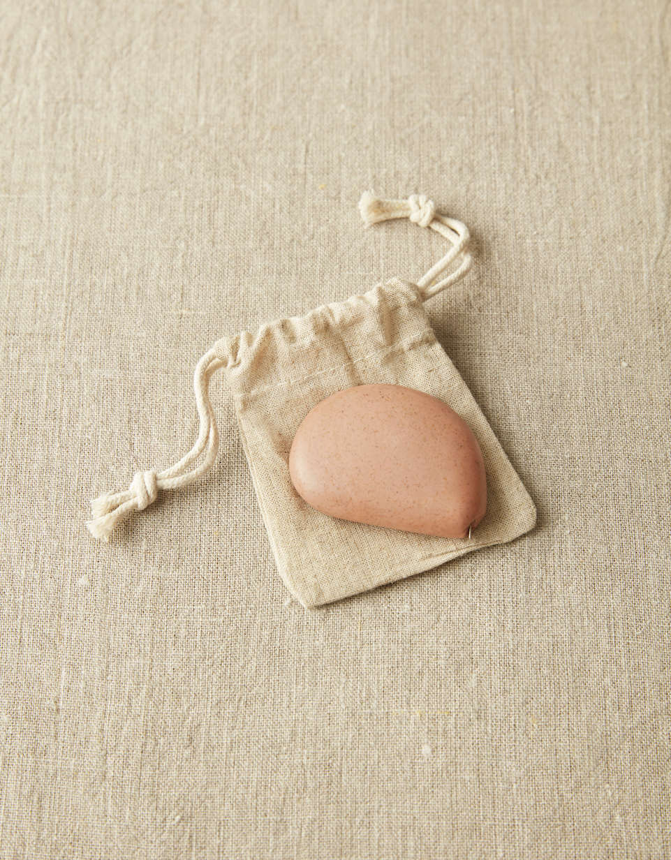 Each tape measure is packaged in a reusable linen drawstring bag to minimize packaging waste.